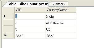 Columns : CID (primary key / AutoIncrement) , CountyName as Nvarchar(200)TableName = StateMst