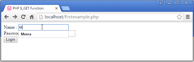 In above result.php page we will retrieve the username and password values using $_GET function.