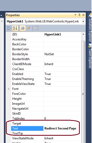 Below screen show we have set both Text and NavigateUrl property of hyperlink control in asp.net.