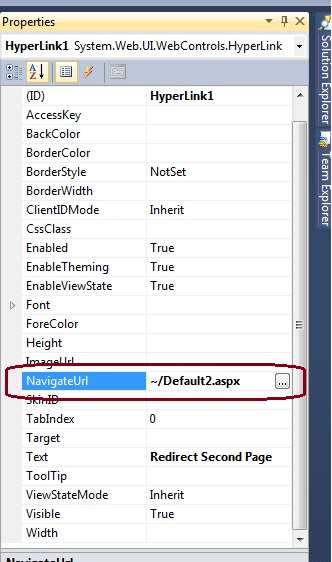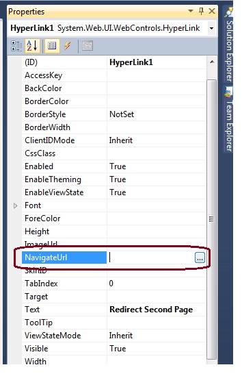 Step 5 – Set NavigateUrl Property to destination web page name.