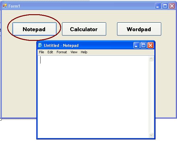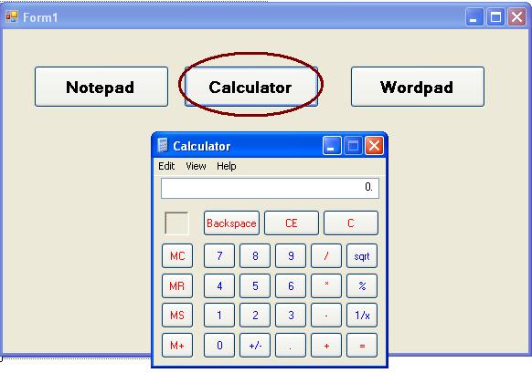 Open Notepad, Calculator and wordpad from Windows Application C#